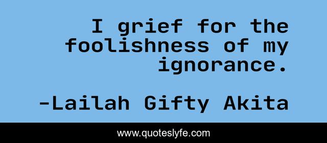 This page presents the quote "I grief for the foolishness of my ignorance.". Author of this quote is Lailah Gifty Akita. This quote is about grief, ignorance, lailah-gifty-akita, inspirational, enthusiasm, foolish,.