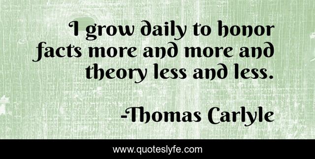 This page presents the quote "I grow daily to honor facts more and more and theory less and less.". Author of this quote is Thomas Carlyle. .