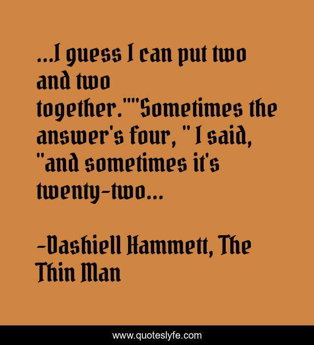 "Dashiell Hammett, The Thin Man Quotes." Quoteslyfe.com, 2025. Mon. 15 Dec. 2025. <https://www.quoteslyfe.com/quote/I-guess-I-can-put-two-and-247250>.