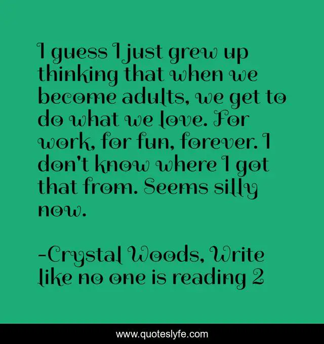 "Crystal Woods, Write like no one is reading 2 Quotes." Quoteslyfe.com, 2025. Sat. 06 Dec. 2025. <https://www.quoteslyfe.com/quote/I-guess-I-just-grew-up-thinking-166626>.