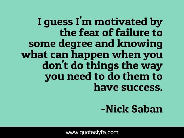 This page presents the quote "I guess I'm motivated by the fear of failure to some degree and knowing what can happen when you don't do things the way you need to do them to have success.". Author of this quote is Nick Saban. This quote is about fear, success,.