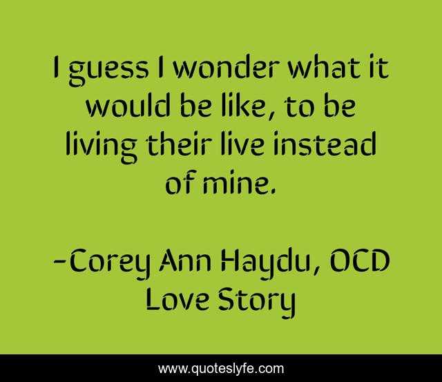 This page presents the quote "I guess I wonder what it would be like, to be living their live instead of mine.". Author of this quote is Corey Ann Haydu, OCD Love Story. This quote is about wishes, ocd, dreams,.