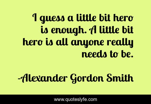 This page presents the quote "I guess a little bit hero is enough. A little bit hero is all anyone really needs to be.". Author of this quote is Alexander Gordon Smith. This quote is about inspirational-attitude, heroism,.