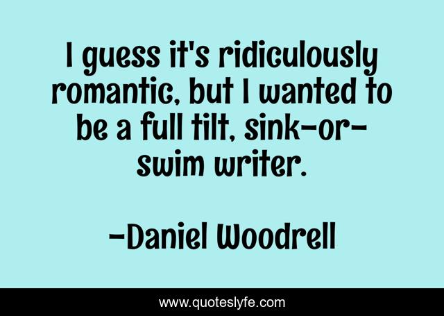 This page presents the quote "I guess it's ridiculously romantic, but I wanted to be a full tilt, sink-or-swim writer.". Author of this quote is Daniel Woodrell. This quote is about ridiculously, guess, writer,.