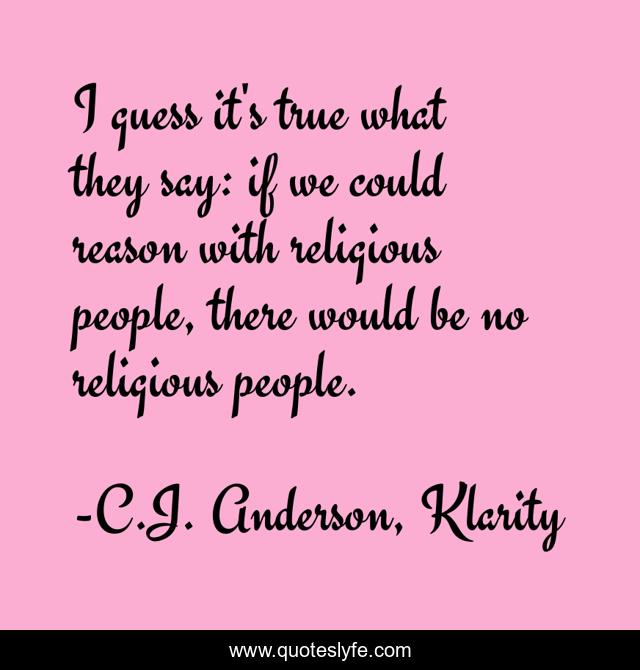 This page presents the quote "I guess it's true what they say: if we could reason with religious people, there would be no religious people.". Author of this quote is C.J. Anderson, Klarity. .