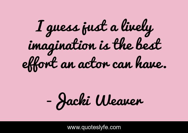 This page presents the quote "I guess just a lively imagination is the best effort an actor can have.". Author of this quote is Jacki Weaver. This quote is about effort, best, actor,.