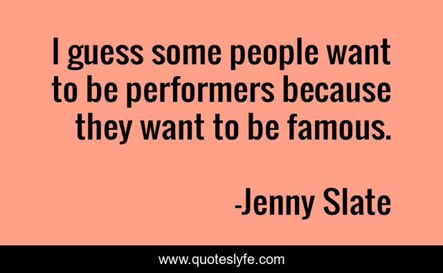 This page presents the quote "I guess some people want to be performers because they want to be famous.". Author of this quote is Jenny Slate. This quote is about some people, people,.