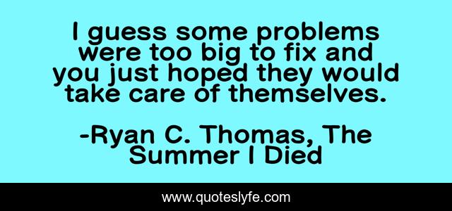 This page presents the quote "I guess some problems were too big to fix and you just hoped they would take care of themselves.". Author of this quote is Ryan C. Thomas, The Summer I Died. .