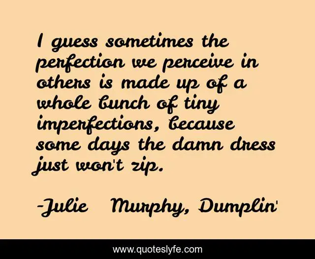 "Julie Murphy, Dumplin' Quotes." Quoteslyfe.com, 2025. Sat. 06 Dec. 2025. <https://www.quoteslyfe.com/quote/I-guess-sometimes-the-perfection-we-perceive-142770>.