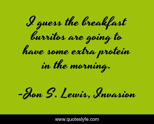 "Jon S. Lewis, Invasion Quotes." Quoteslyfe.com, 2025. Fri. 05 Dec. 2025. <https://www.quoteslyfe.com/quote/I-guess-the-breakfast-burritos-are-going-149870>.