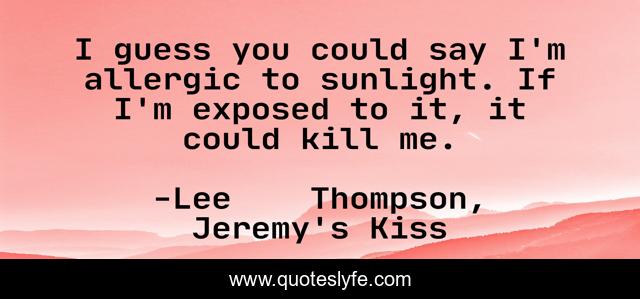 This page presents the quote "I guess you could say I'm allergic to sunlight. If I'm exposed to it, it could kill me.". Author of this quote is Lee Thompson, Jeremy's Kiss. This quote is about jeremy, vampire, thriller, fiction,.
