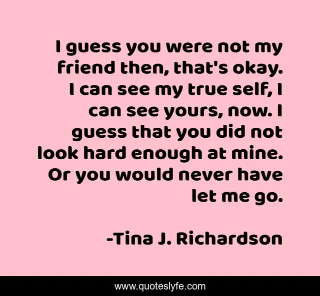"Tina J. Richardson Quotes." Quoteslyfe.com, 2025. Fri. 05 Dec. 2025. <https://www.quoteslyfe.com/quote/I-guess-you-were-not-my-friend-126863>.
