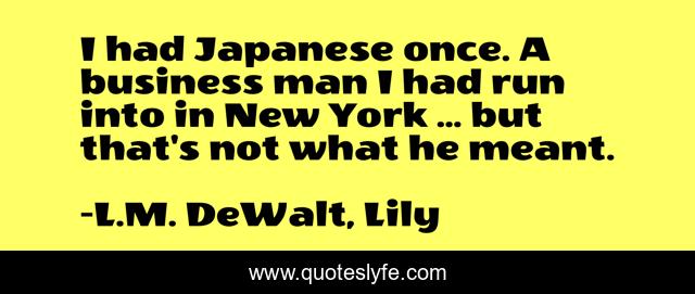 "L.M. DeWalt, Lily Quotes." Quoteslyfe.com, 2025. Fri. 05 Dec. 2025. <https://www.quoteslyfe.com/quote/I-had-Japanese-once-A-business-man-132664>.