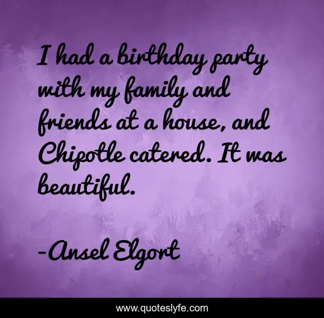This page presents the quote "I had a birthday party with my family and friends at a house, and Chipotle catered. It was beautiful.". Author of this quote is Ansel Elgort. This quote is about beautiful, friends, family,.