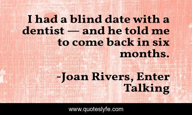 This page presents the quote "I had a blind date with a dentist — and he told me to come back in six months.". Author of this quote is Joan Rivers, Enter Talking. This quote is about humour, performers, writing, brooklyn, nyc, comedy,.