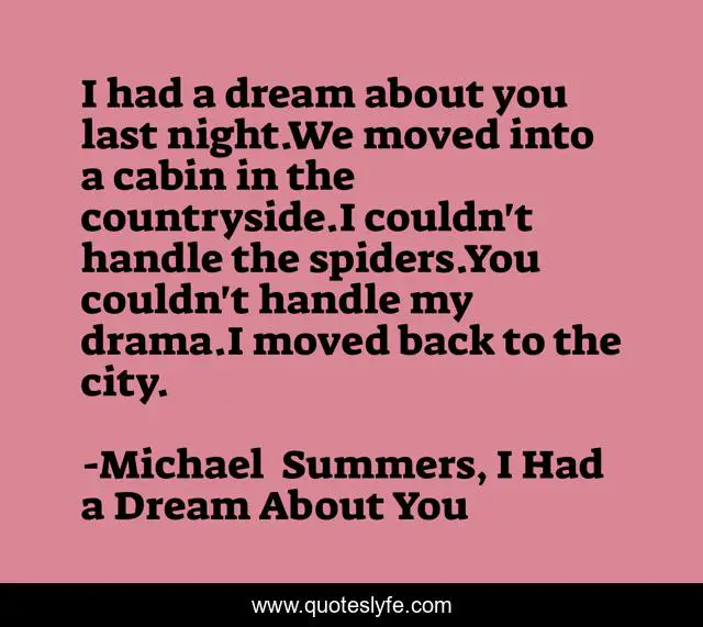 "Michael Summers, I Had a Dream About You Quotes." Quoteslyfe.com, 2025. Sat. 06 Dec. 2025. <https://www.quoteslyfe.com/quote/I-had-a-dream-about-you-last-35021>.