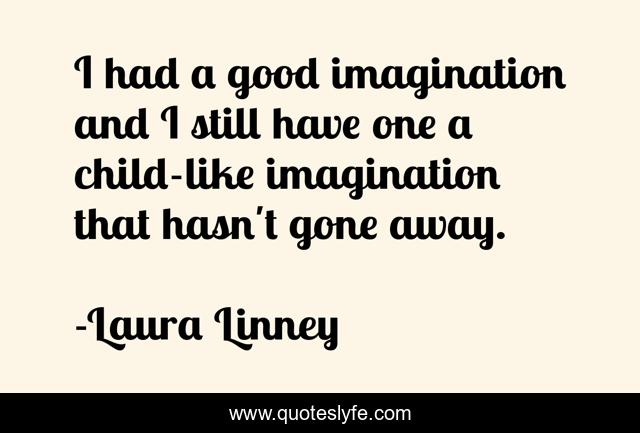 This page presents the quote "I had a good imagination and I still have one a child-like imagination that hasn't gone away.". Author of this quote is Laura Linney. This quote is about gone, away, good,.