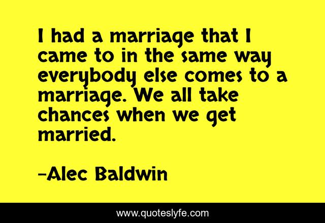 This page presents the quote "I had a marriage that I came to in the same way everybody else comes to a marriage. We all take chances when we get married.". Author of this quote is Alec Baldwin. This quote is about married, way, same,.