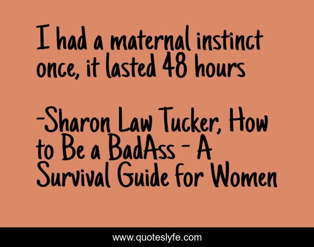 This page presents the quote "I had a maternal instinct once, it lasted 48 hours". Author of this quote is Sharon Law Tucker, How to Be a BadAss - A Survival Guide for Women. .