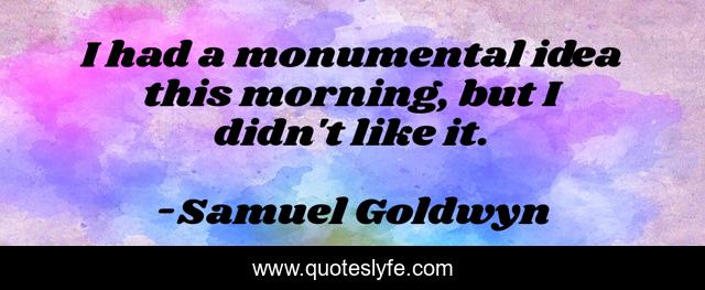"Samuel Goldwyn Quotes." Quoteslyfe.com, 2025. Fri. 05 Dec. 2025. <https://www.quoteslyfe.com/quote/I-had-a-monumental-idea-this-morning-298165>.