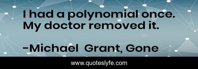 "Michael Grant, Gone Quotes." Quoteslyfe.com, 2025. Sun. 07 Dec. 2025. <https://www.quoteslyfe.com/quote/I-had-a-polynomial-once-My-doctor-6817>.