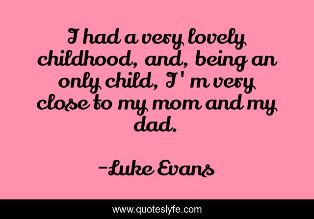 This page presents the quote "I had a very lovely childhood, and, being an only child, I'm very close to my mom and my dad.". Author of this quote is Luke Evans. This quote is about lovely, childhood, child,.