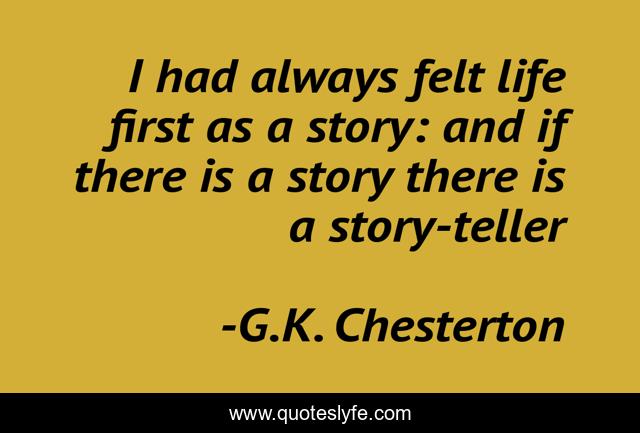 This page presents the quote "I had always felt life first as a story: and if there is a story there is a story-teller". Author of this quote is G.K. Chesterton. This quote is about enthusiasm, inspirational,.