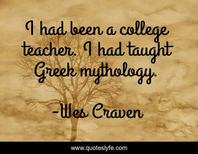 This page presents the quote "I had been a college teacher. I had taught Greek mythology.". Author of this quote is Wes Craven. This quote is about mythology, college,.