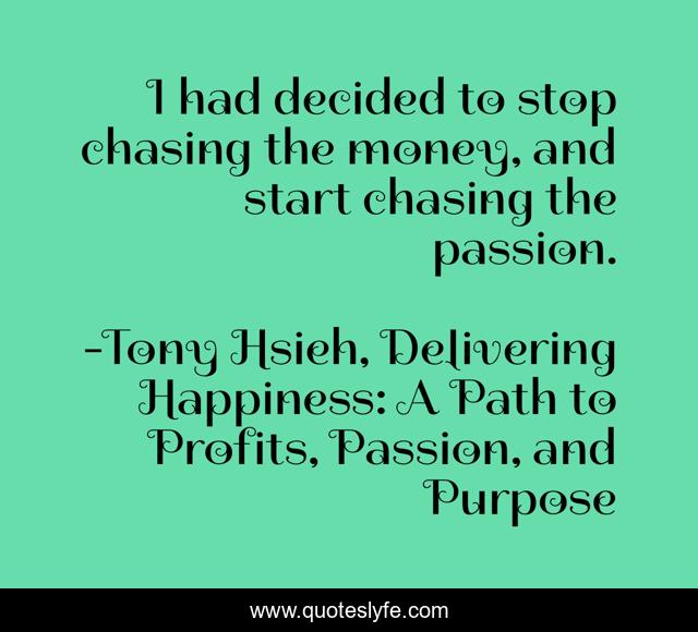 "Tony Hsieh, Delivering Happiness: A Path to Profits, Passion, and Purpose Quotes." Quoteslyfe.com, 2025. Fri. 05 Dec. 2025. <https://www.quoteslyfe.com/quote/I-had-decided-to-stop-chasing-the-16654>.
