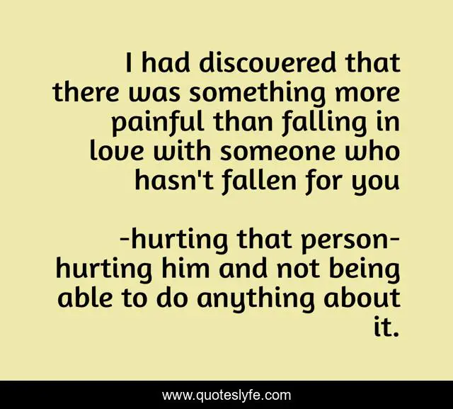 I had discovered that there was something more painful than falling in love with someone who hasn't fallen for you