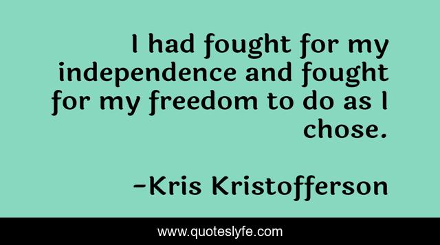 "Kris Kristofferson Quotes." Quoteslyfe.com, 2025. Mon. 08 Dec. 2025. <https://www.quoteslyfe.com/quote/I-had-fought-for-my-independence-and-299855>.