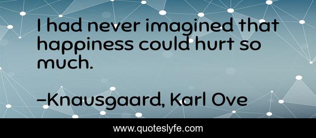 This page presents the quote "I had never imagined that happiness could hurt so much.". Author of this quote is Knausgaard, Karl Ove. This quote is about pain, happiness,.