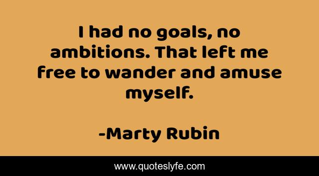 This page presents the quote "I had no goals, no ambitions. That left me free to wander and amuse myself.". Author of this quote is Marty Rubin. This quote is about freedom, wandering, goals, ambition,.