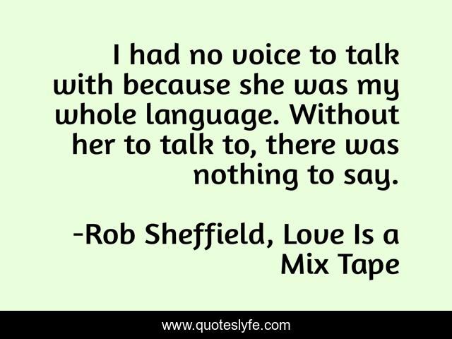 This page presents the quote "I had no voice to talk with because she was my whole language. Without her to talk to, there was nothing to say.". Author of this quote is Rob Sheffield, Love Is a Mix Tape. .