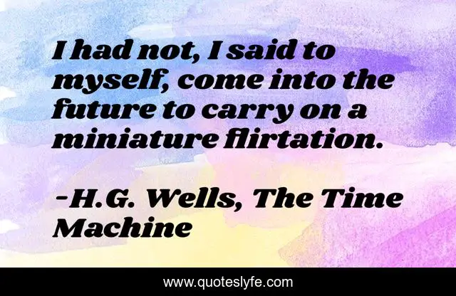 This page presents the quote "I had not, I said to myself, come into the future to carry on a miniature flirtation.". Author of this quote is H.G. Wells, The Time Machine. This quote is about funny, humour, time-travel, romance, flirtation, comedy,.