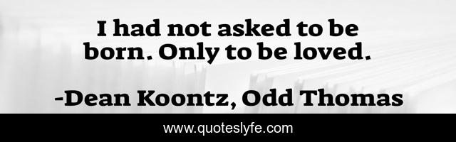This page presents the quote "I had not asked to be born. Only to be loved.". Author of this quote is Dean Koontz, Odd Thomas. This quote is about life, love, odd-thomas, affection, mother,.