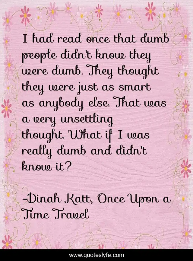 "Dinah Katt, Once Upon a Time Travel Quotes." Quoteslyfe.com, 2025. Fri. 05 Dec. 2025. <https://www.quoteslyfe.com/quote/I-had-read-once-that-dumb-people-252397>.