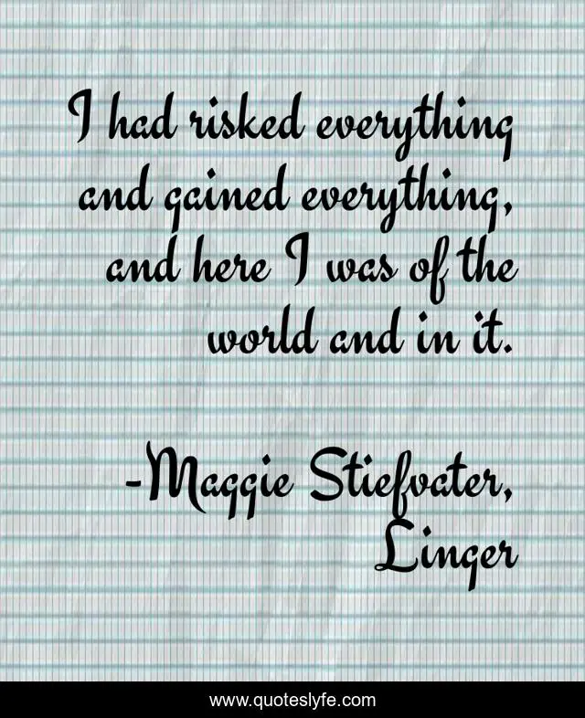 "Maggie Stiefvater, Linger Quotes." Quoteslyfe.com, 2025. Mon. 08 Dec. 2025. <https://www.quoteslyfe.com/quote/I-had-risked-everything-and-gained-everything-138505>.