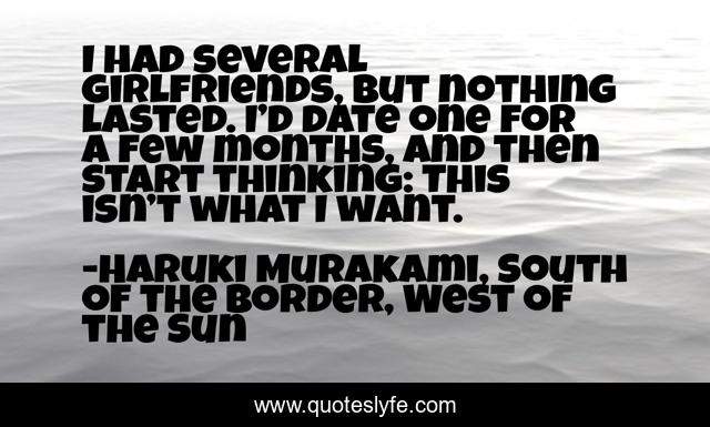 "Haruki Murakami, South of the Border, West of the Sun Quotes." Quoteslyfe.com, 2025. Fri. 05 Dec. 2025. <https://www.quoteslyfe.com/quote/I-had-several-girlfriends-but-nothing-lasted-244357>.