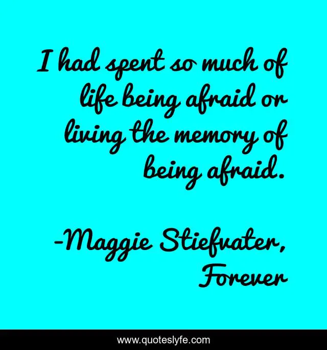 This page presents the quote "I had spent so much of life being afraid or living the memory of being afraid.". Author of this quote is Maggie Stiefvater, Forever. This quote is about fear, memory,.