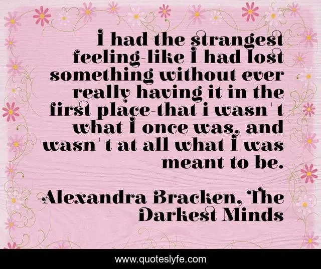 This page presents the quote "I had the strangest feeling-like I had lost something without ever really having it in the first place-that i wasn't what I once was, and wasn't at all what I was meant to be.". Author of this quote is Alexandra Bracken, The Darkest Minds. .