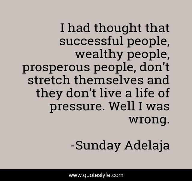 This page presents the quote "I had thought that successful people, wealthy people, prosperous people, don’t stretch themselves and they don’t live a life of pressure. Well I was wrong.". Author of this quote is Sunday Adelaja. This quote is about stretch, pressure, life, successful, wealthy,.