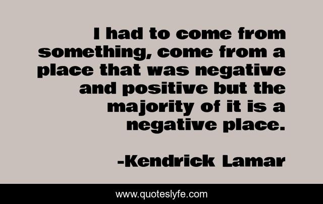 This page presents the quote "I had to come from something, come from a place that was negative and positive but the majority of it is a negative place.". Author of this quote is Kendrick Lamar. This quote is about place, negative, something,.