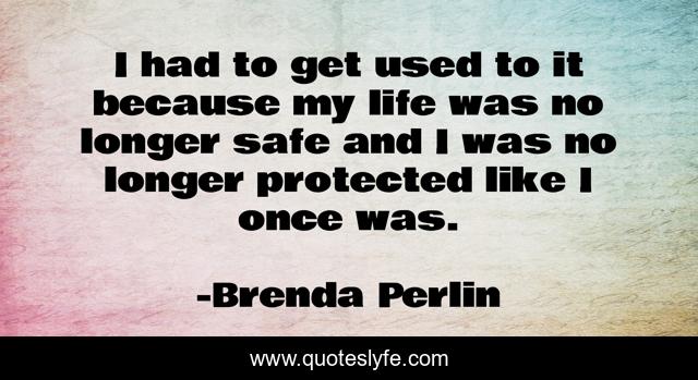 This page presents the quote "I had to get used to it because my life was no longer safe and I was no longer protected like I once was.". Author of this quote is Brenda Perlin. This quote is about loss, love, divorce, coming-of-age, marriage, affection,.