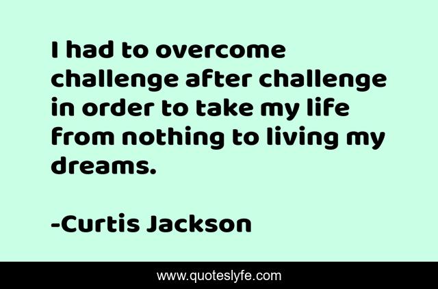 This page presents the quote "I had to overcome challenge after challenge in order to take my life from nothing to living my dreams.". Author of this quote is Curtis Jackson. This quote is about life, my life, challenge,.