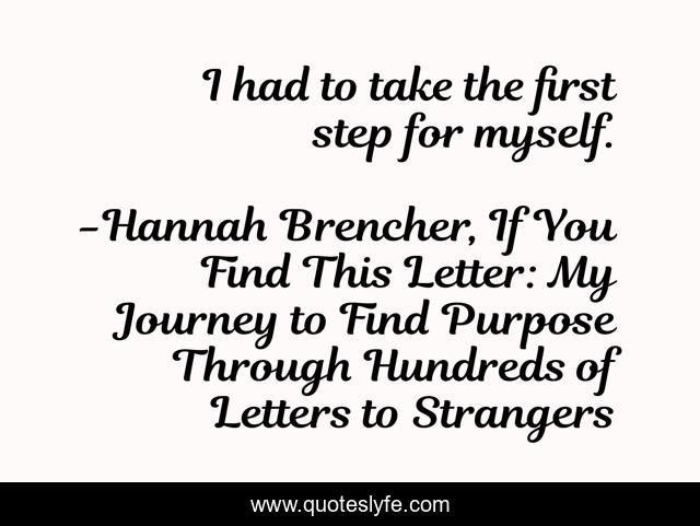 "Hannah Brencher, If You Find This Letter: My Journey to Find Purpose Through Hundreds of Letters to Strangers Quotes." Quoteslyfe.com, 2025. Fri. 05 Dec. 2025. <https://www.quoteslyfe.com/quote/I-had-to-take-the-first-step-153334>.