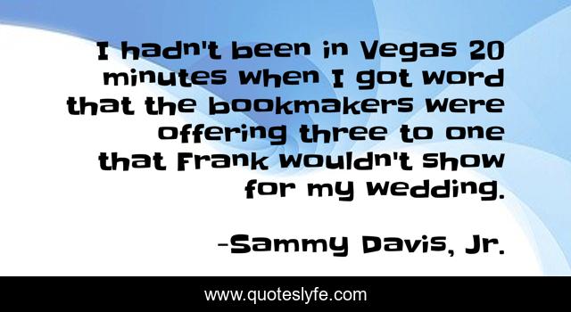 This page presents the quote "I hadn't been in Vegas 20 minutes when I got word that the bookmakers were offering three to one that Frank wouldn't show for my wedding.". Author of this quote is Sammy Davis, Jr.. This quote is about vegas, three, show,.