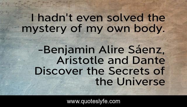 "Benjamin Alire Sáenz, Aristotle and Dante Discover the Secrets of the Universe Quotes." Quoteslyfe.com, 2025. Fri. 05 Dec. 2025. <https://www.quoteslyfe.com/quote/I-hadn-t-even-solved-the-mystery-146101>.