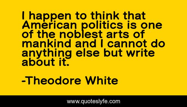 This page presents the quote "I happen to think that American politics is one of the noblest arts of mankind and I cannot do anything else but write about it.". Author of this quote is Theodore White. This quote is about american, think, anything,.