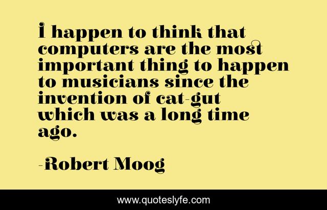 This page presents the quote "I happen to think that computers are the most important thing to happen to musicians since the invention of cat-gut which was a long time ago.". Author of this quote is Robert Moog. This quote is about musicians, long, time,.